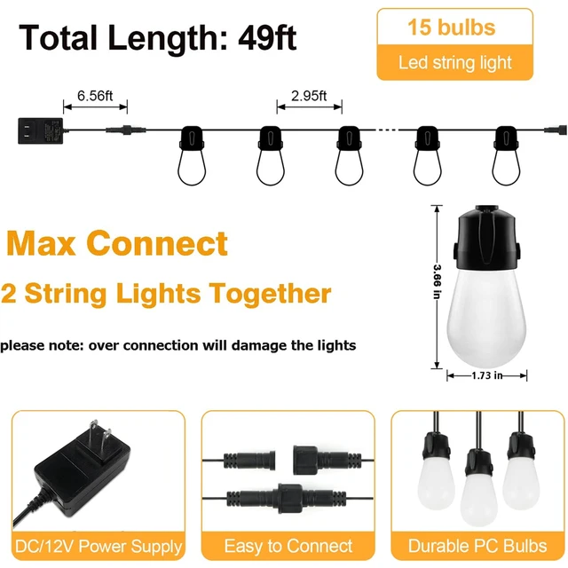 Visterlite 15 Pack Dimmable Shatterproof S14 Led Replacement Outdoor String Light Bulbs 2700k 2w Plastic Led E26 Medium Screw Base Edison Bulbs Equivalent To 11 25 Watt Amazon Com